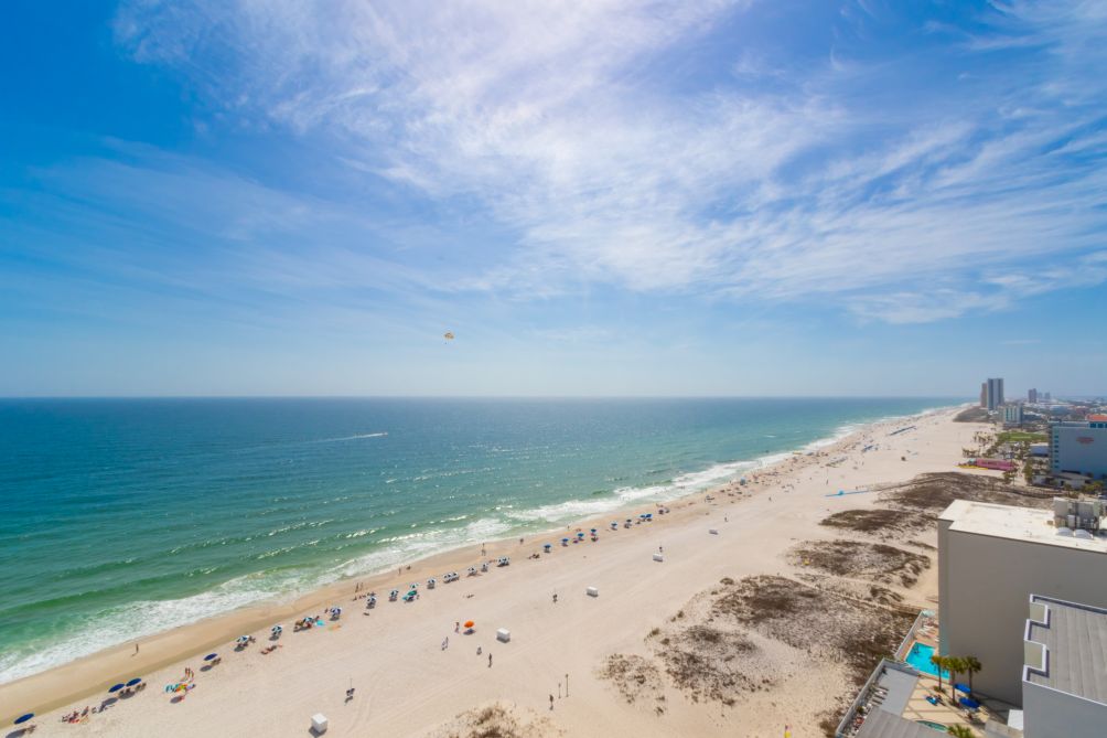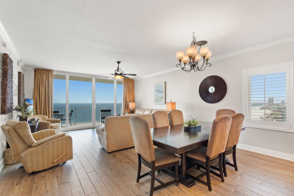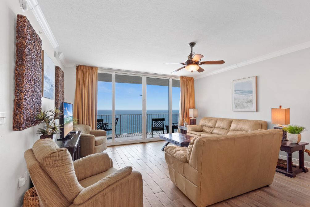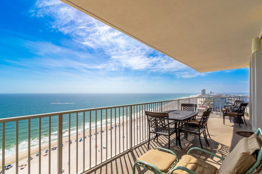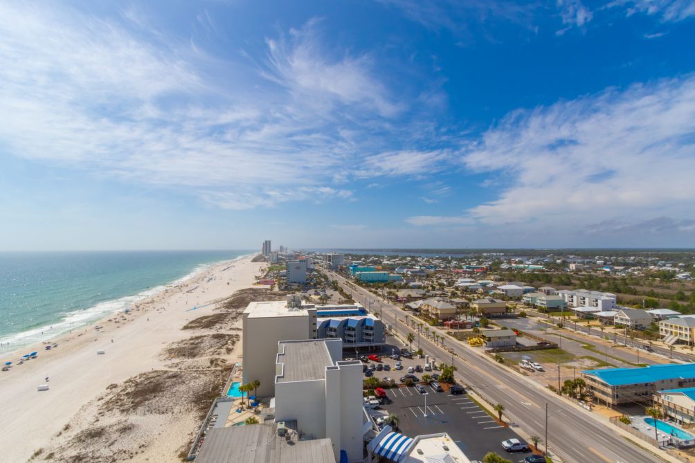 Welcome to San Carlos 1709, a remarkable west-end corner condo located on the 17th floor in Gulf Shores, AL. This exceptional unit offers direct Gulf-front views, with floor-to-ceiling windows that capture the breathtaking shoreline panorama. The spacious open living area flows effortlessly onto a private balcony, the ideal spot for savoring morning coffee or sunset cocktails with endless western water views.