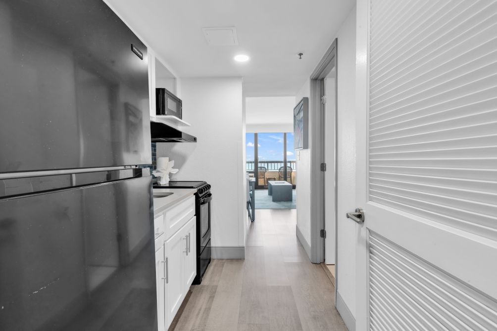 Inside, the condo offers a bright and welcoming living area with a cozy sitting space to unwind after a day at the beach, as well as a dining area and an equipped kitchen ideal for sharing meals and quality time together. The well-designed layout provides both comfort and convenience, making you feel right at home throughout your stay.