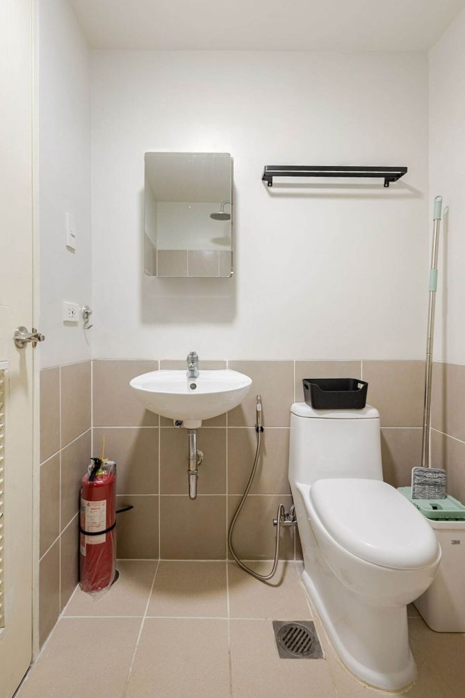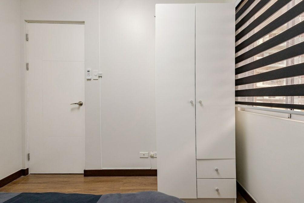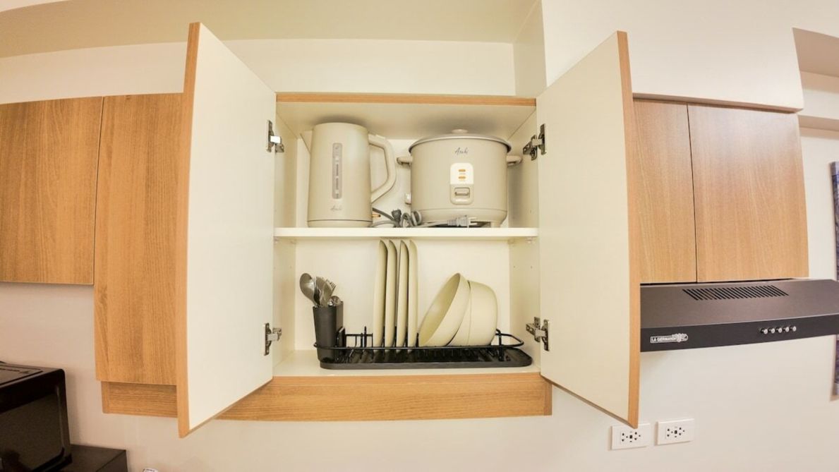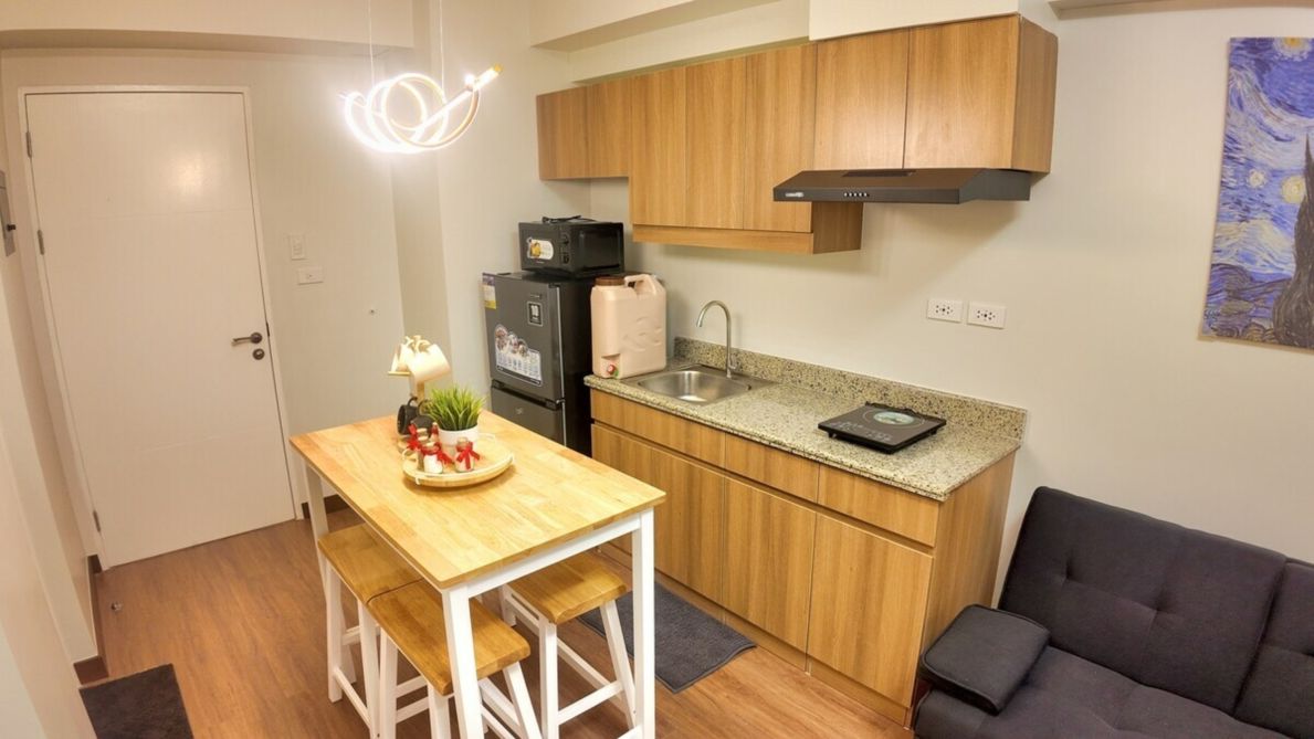 The mini kitchen is equipped with essentials for light cooking, including a refrigerator, microwave, and air fryer, plus complimentary mineral water to keep you refreshed. Guests also have access to building amenities such as the pool, gym, and lounge areas (subject to building policies). Ideal for solo travelers, couples, business trips, or relaxing staycations.