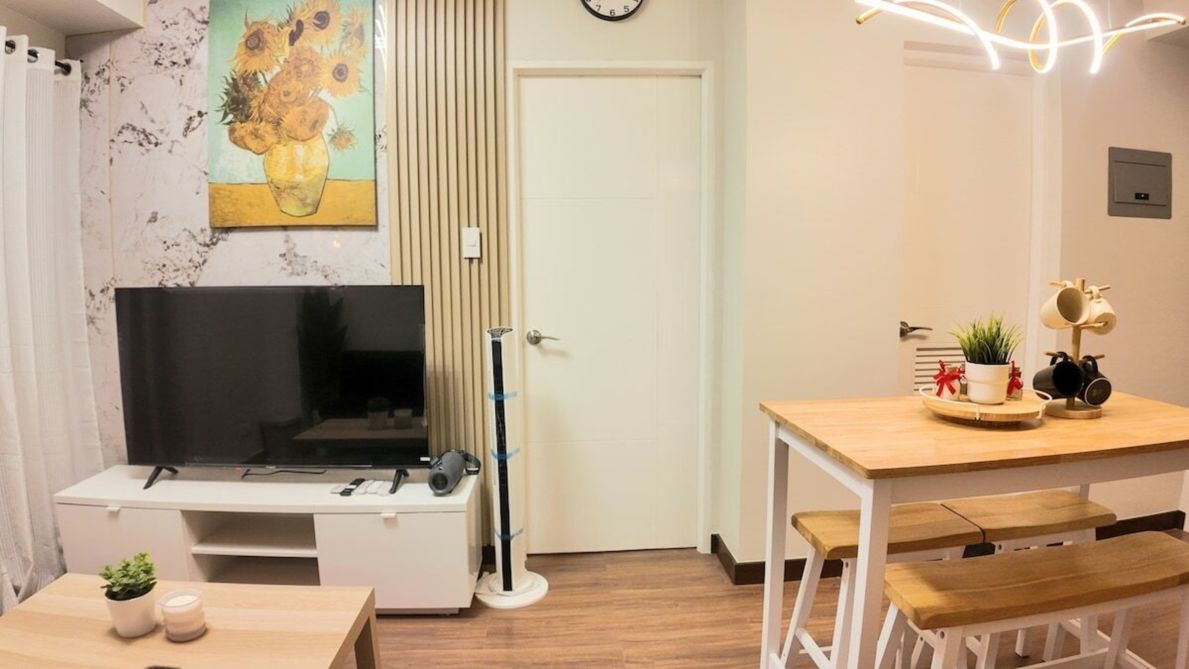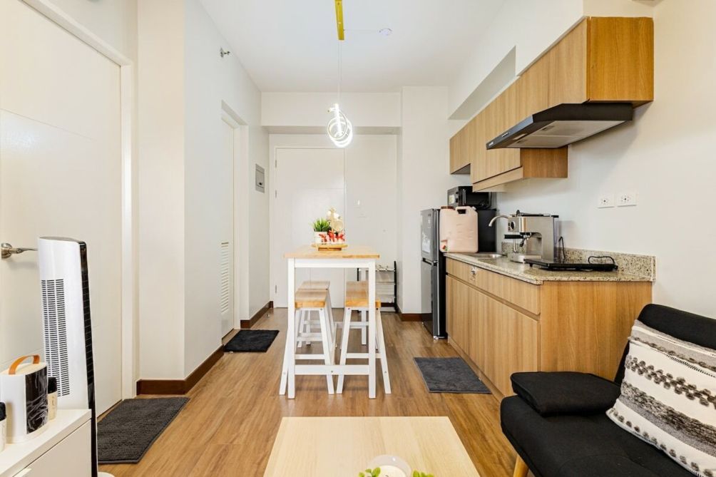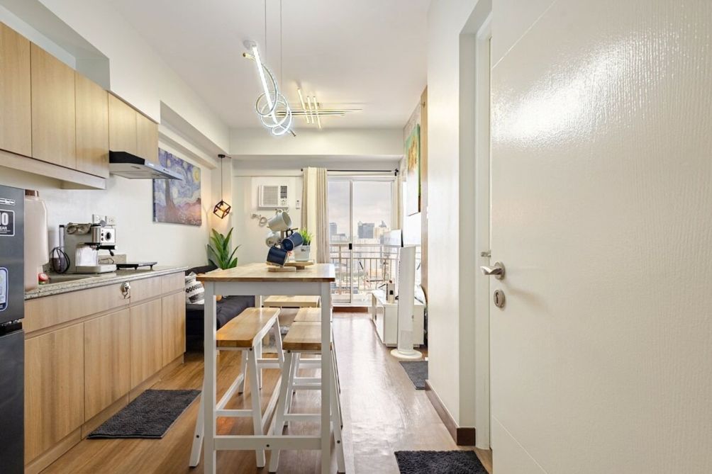 Our thoughtfully designed 1-bedroom condo gives you a refreshing ambiance and an open, relaxing vibe. Step out to your private balcony and enjoy a charming Makati skyline view — perfect for your morning coffee or evening unwind. The condo is cozy, well-maintained, and equipped with essentials to support both short and long stays. Every detail is prepared with care to ensure a relaxing and pleasant experience.