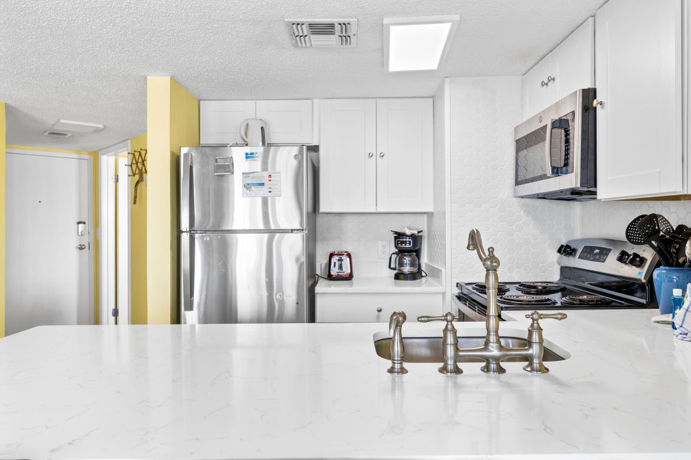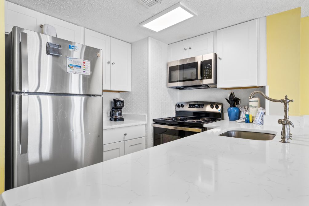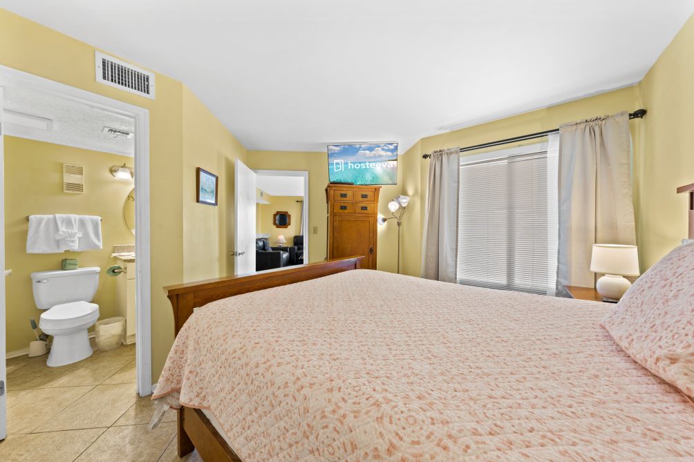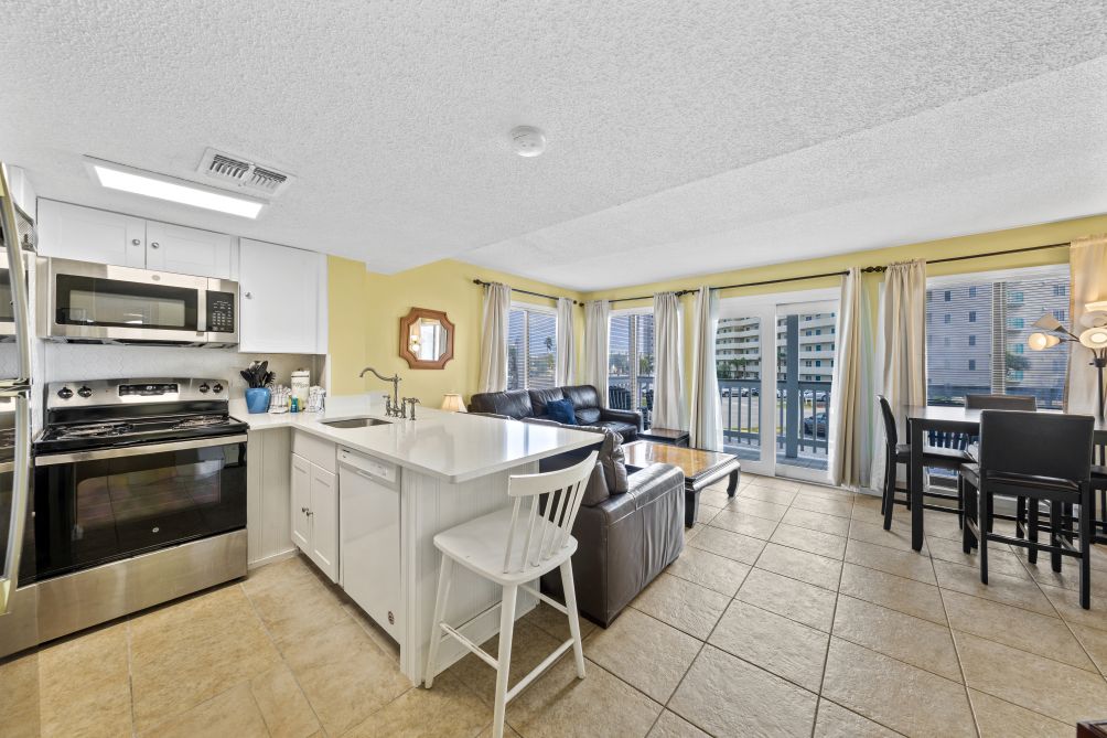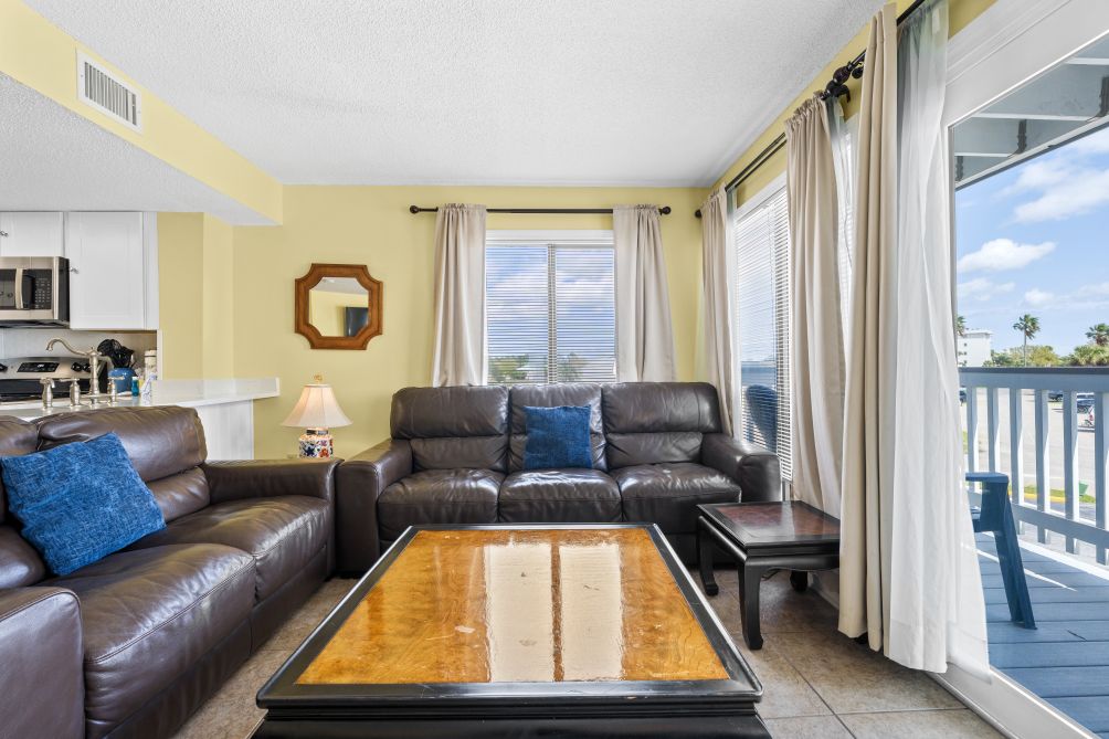 Inside, the condo is clean, comfortable, and thoughtfully furnished for a laid-back coastal getaway. Unwind in the living area after a day at the beach, prepare meals in the fully equipped kitchen, or enjoy coastal views and fresh air from the condo. Catch your favorite shows or the big game on the 50” TV in the living room, with an additional TV in the bedroom for added convenience. Guests also enjoy fast WiFi (48 Mbps) and 58 cable channels, including HBO.