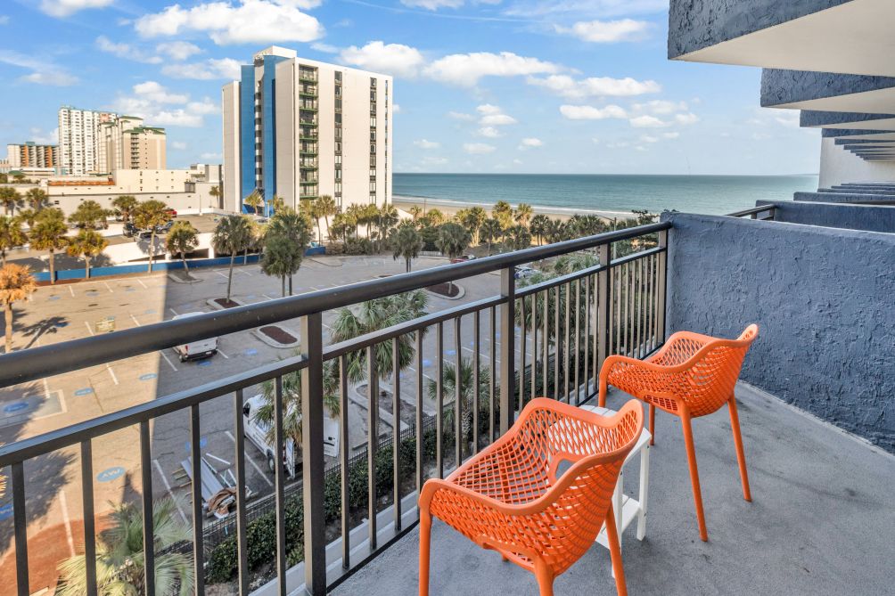 Enjoy a relaxing beachfront getaway in this partial ocean-view one-bedroom condo, ideally located in the heart of Myrtle Beach. Designed to comfortably accommodate up to four guests, the space features a well-sized bedroom, a comfortable living area, and a private balcony with lovely views of the city and ocean.
