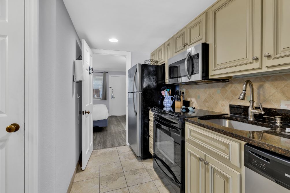 The fully equipped kitchen includes all essential cookware and appliances, making meal preparation easy and convenient. Guests can also take advantage of the resort-style amenities, including multiple indoor and outdoor pools, on-site parking, and 24/7 security with keycard access for added safety and peace of mind.