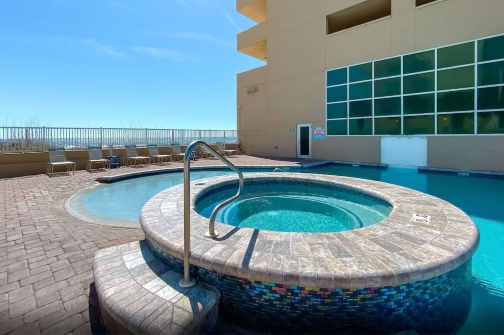 Guests have access to excellent amenities, including an outdoor pool with spa, an indoor heated pool, a fitness center, and a common area with pool tables, foosball, a library, and games. Bike racks are conveniently located near the elevators for secure storage. Beach services such as chair and umbrella rentals, parasailing, and Segway tours are also available.