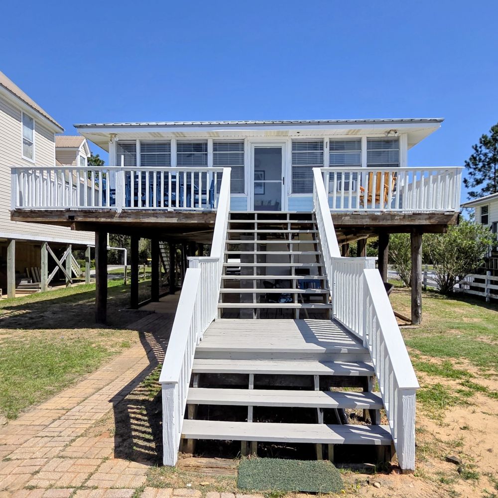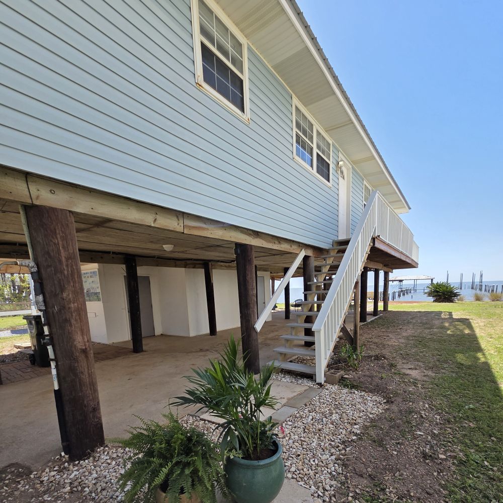 • Home is elevated on pilings – one flight of stairs required (no elevator/lift)
