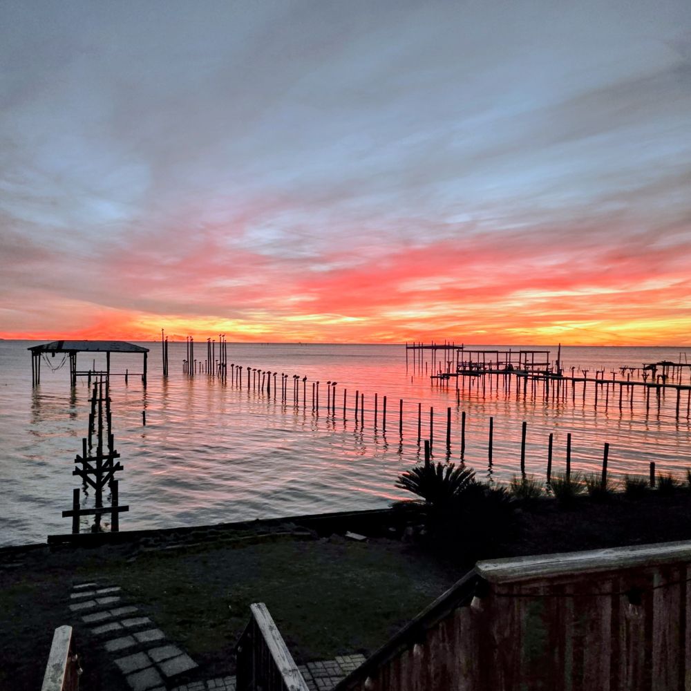 Welcome to Sunset Sanctuary, a private waterfront retreat on the shores of Mobile Bay in beautiful Fairhope, Alabama. This cozy coastal cottage is thoughtfully designed for relaxation, connection, and unforgettable views. Enjoy panoramic sunsets from the porch, sunroom, living room, dining area, and kitchen. Every angle captures the magic of the bay.