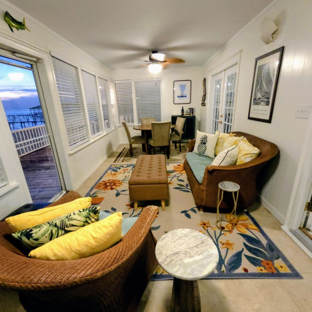 • Cozy sunroom overlooking the water—perfect for rainy days or morning coffee