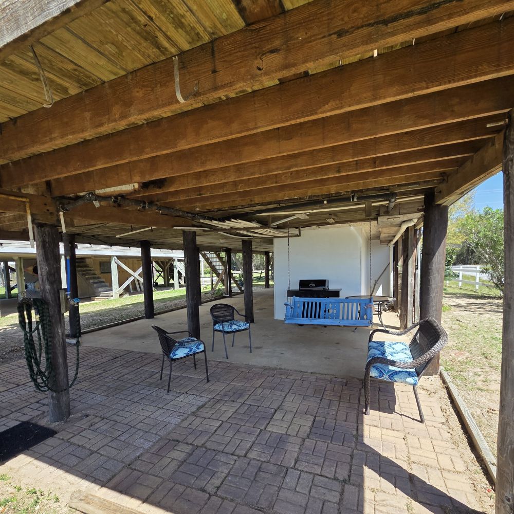 • Porch swing under the house for shaded relaxation