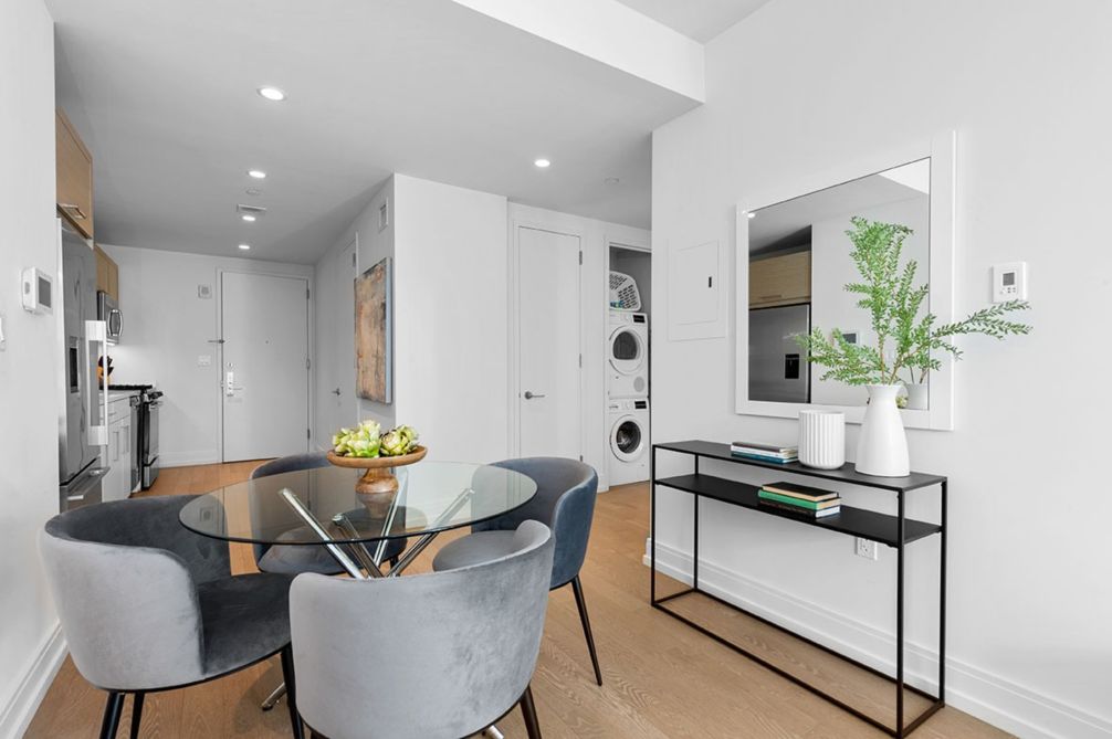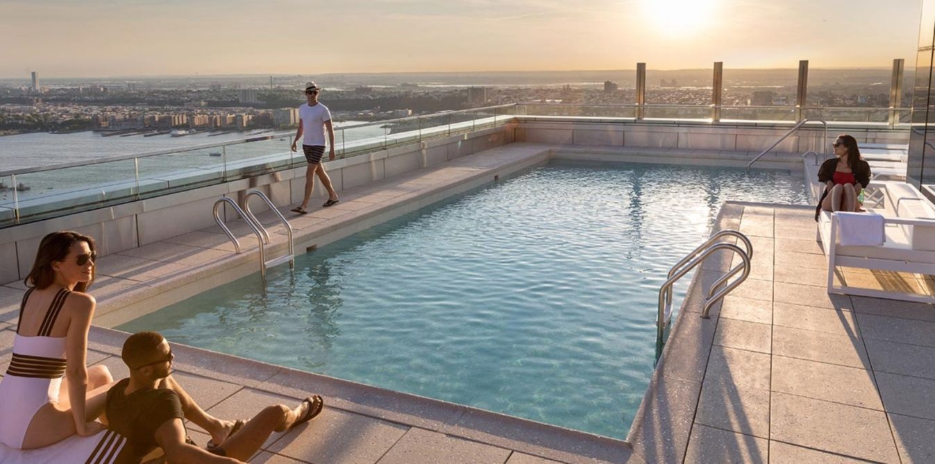 Residents of the Midtown Manhattan Apartments at 555TEN enjoy the calm and quiet afforded by acoustically advanced, double-paned window walls, and each apartment features rich wood floors and Bosch washer/dryers. With the first floor of apartments stationed 150 feet up, the selection of loft and one-, two-, and three-bedroom options rises above expectations, offering views up and down Manhattan.