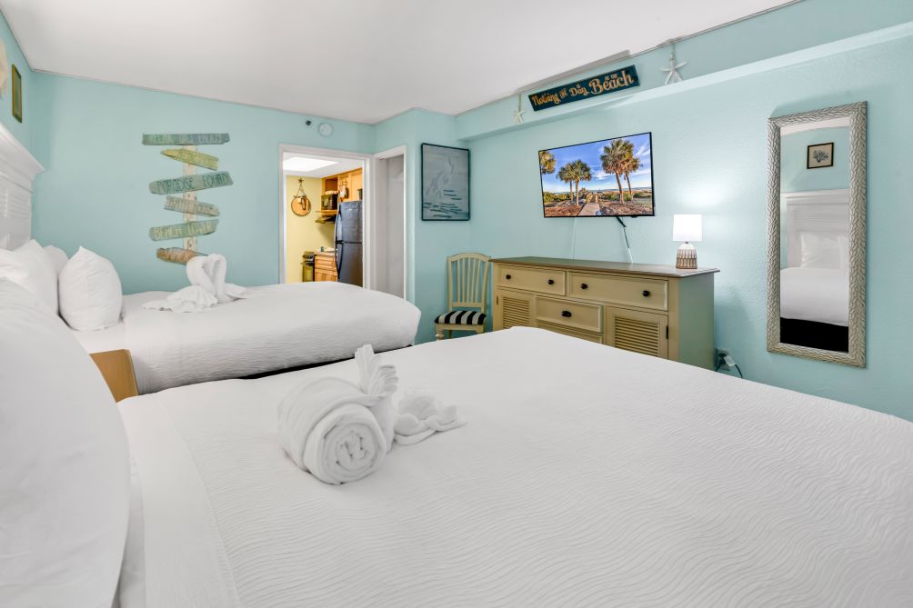 Guests enjoy full access to Compass Cove’s incredible resort amenities, including multiple indoor and outdoor pools, lazy rivers, hot tubs, kiddie pools, and direct beach access just steps away. On-site dining options, a fitness center, and convenient parking make your stay effortless and enjoyable.