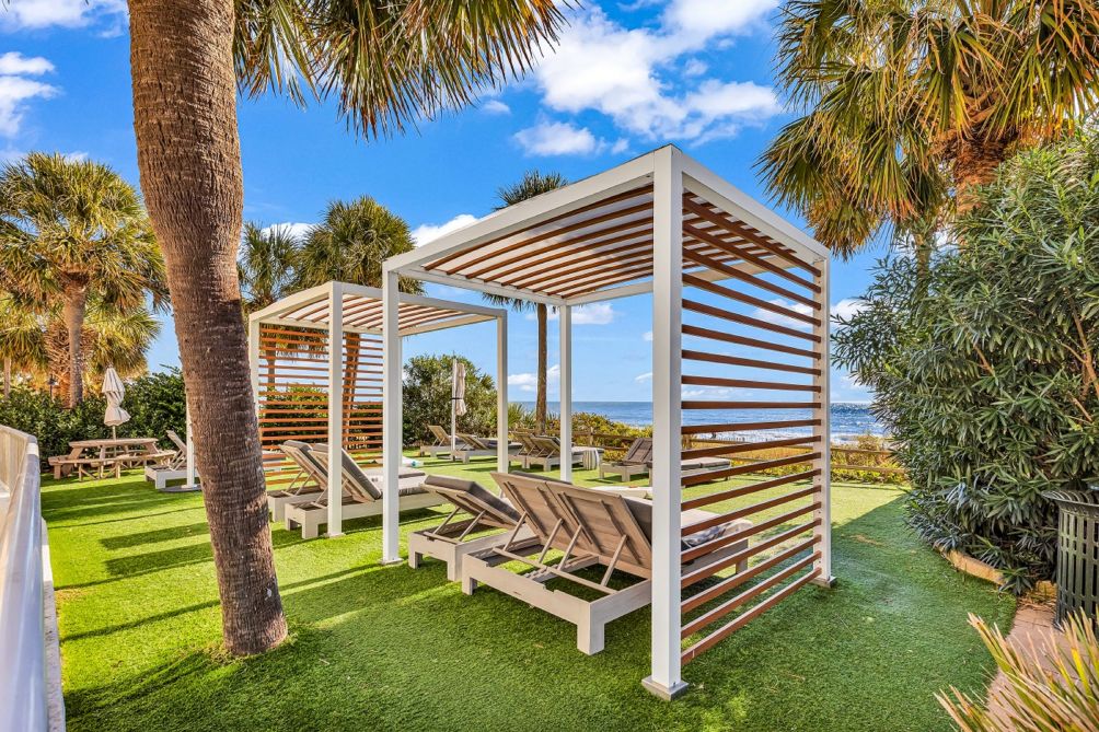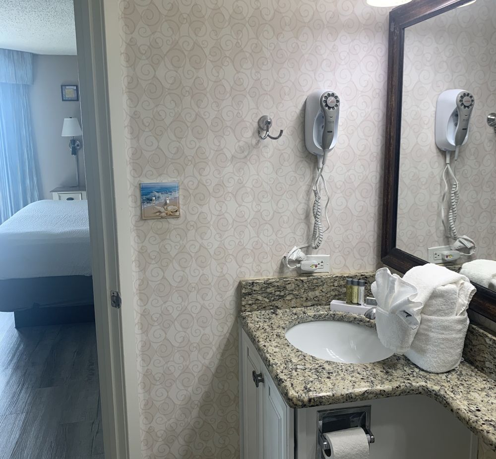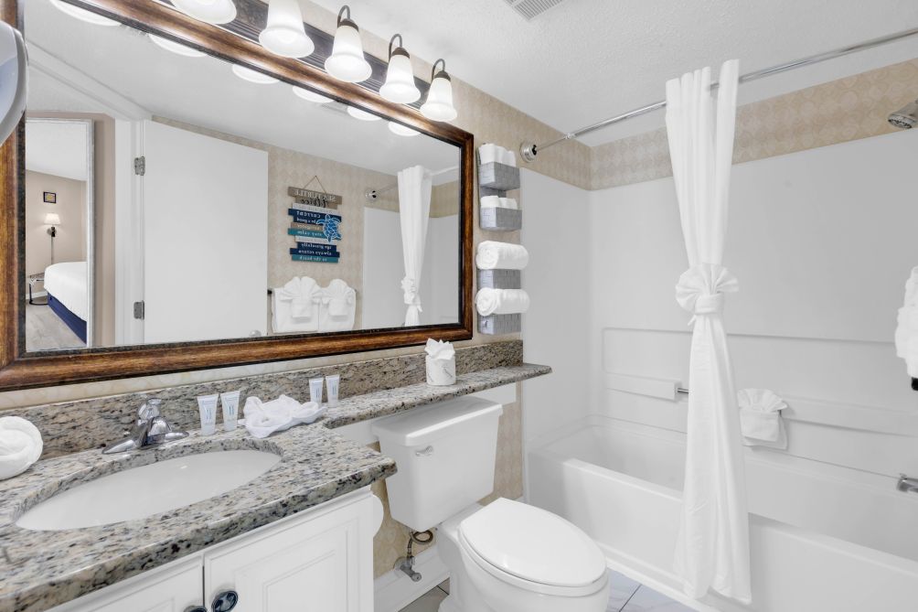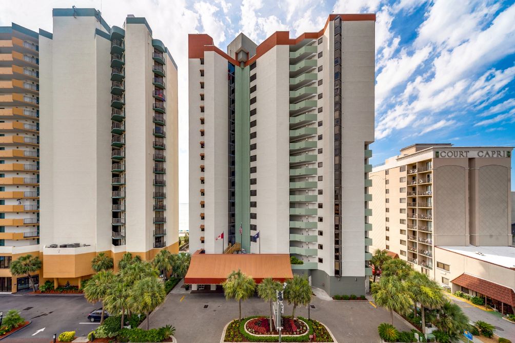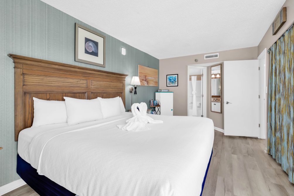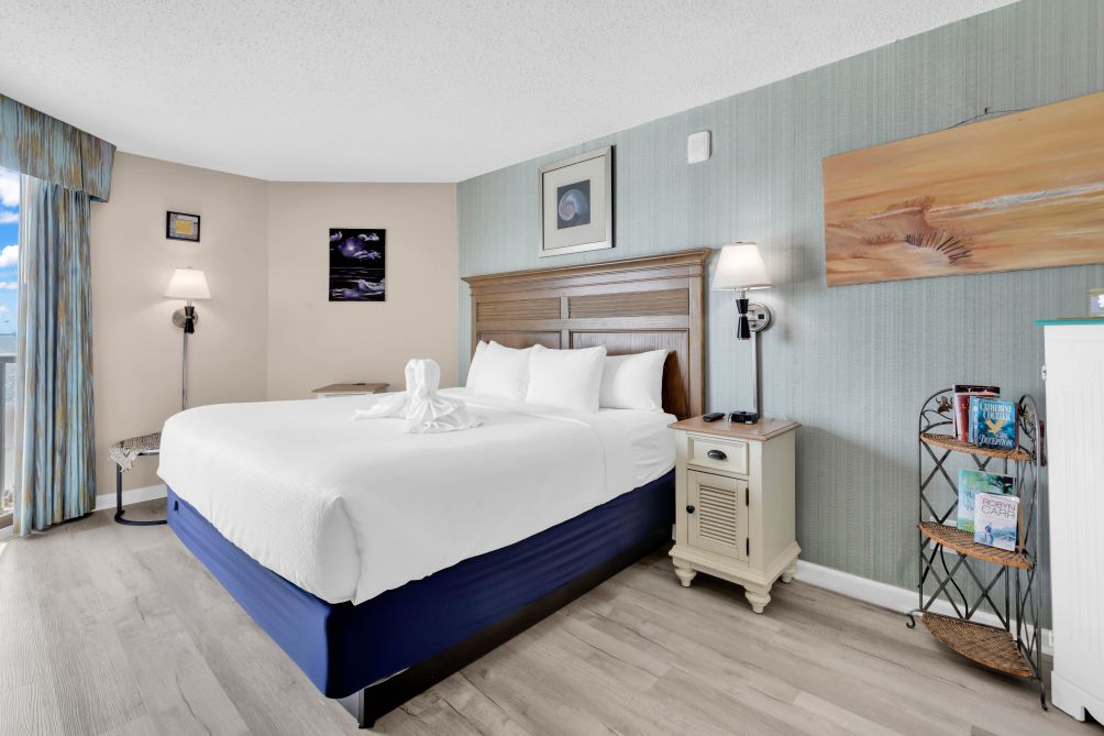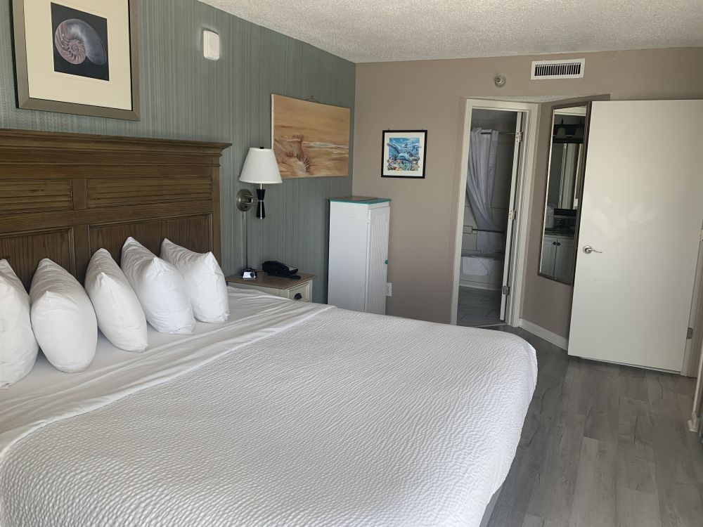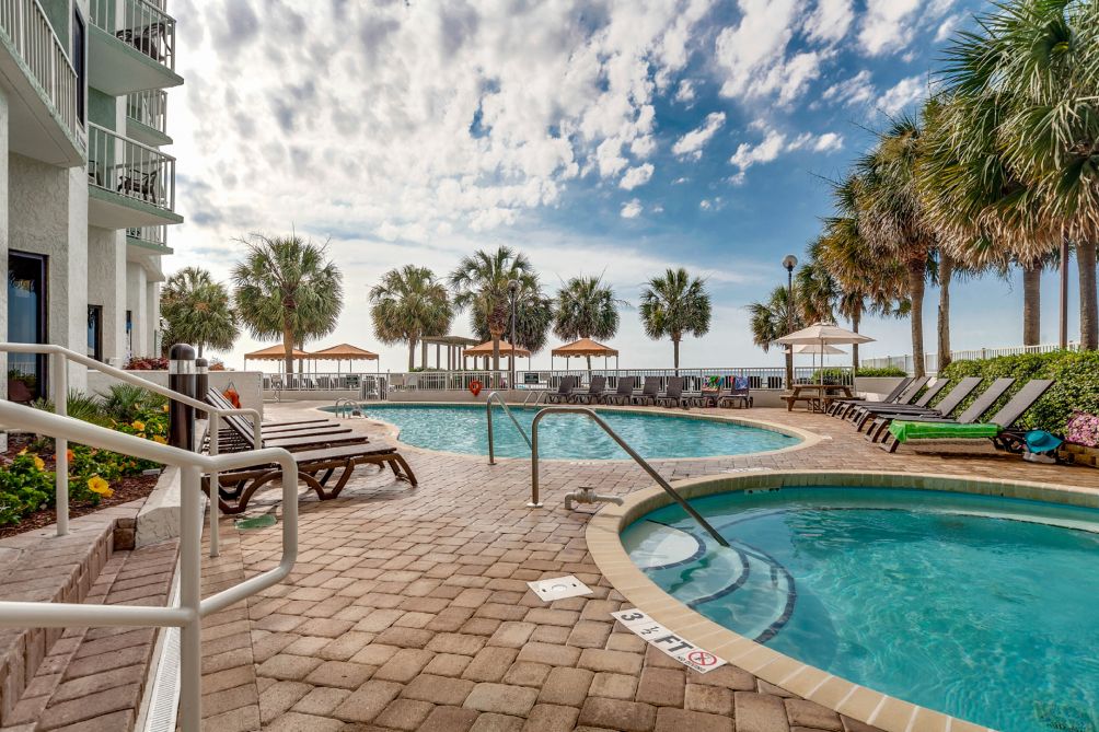 Step outside and enjoy the resort amenities, including a pool conveniently located downstairs in the lobby area and an on-site bar where you can relax with a drink after a fun day exploring the beach.