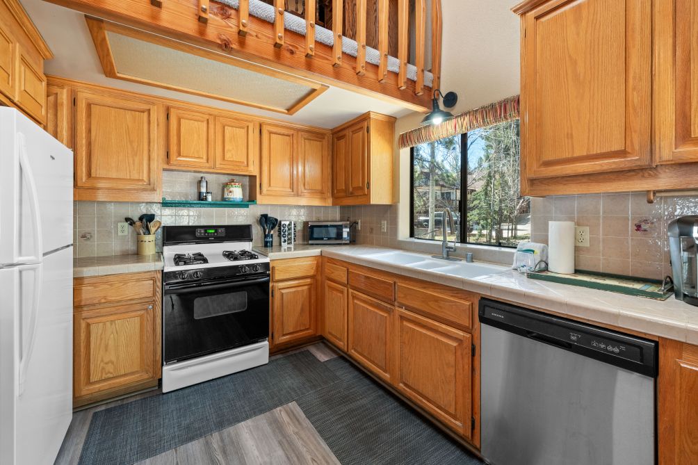 Designed for comfort and convenience, the home features four well-appointed bedrooms, providing plenty of space for family and friends. The fully equipped kitchen makes it easy to prepare meals, whether you're cooking a quick breakfast or a full dinner after a day outdoors.