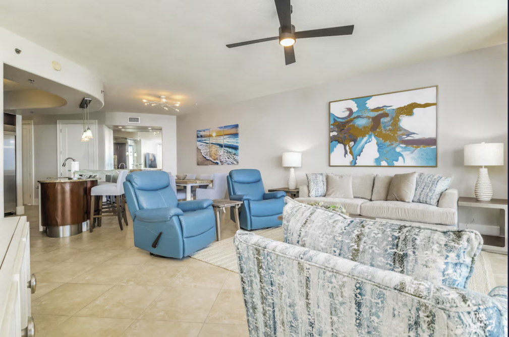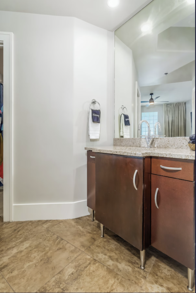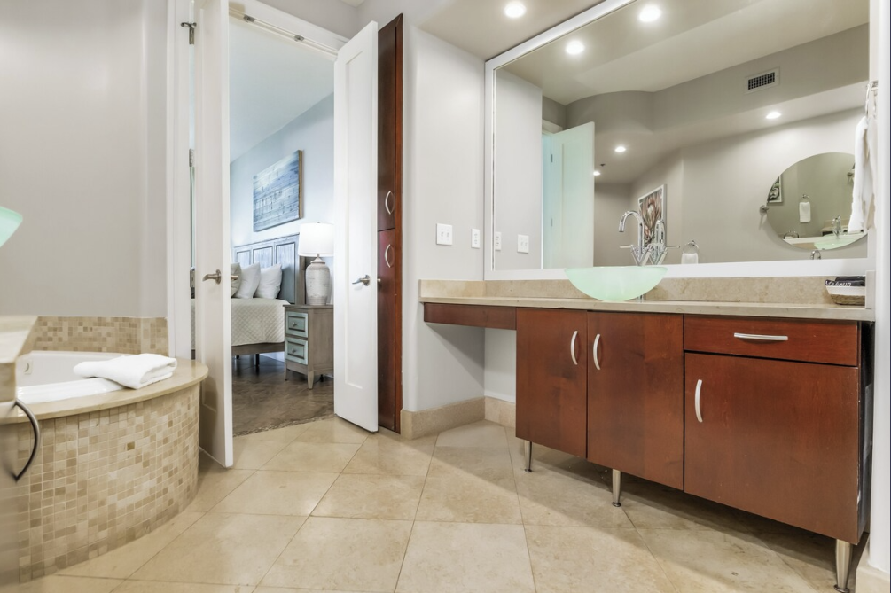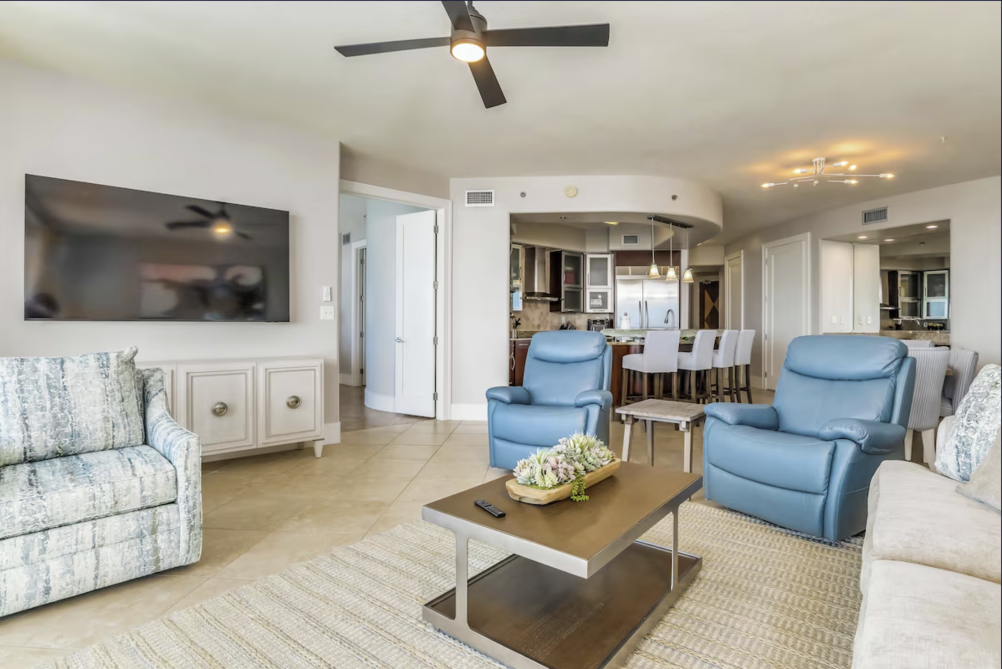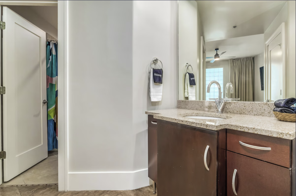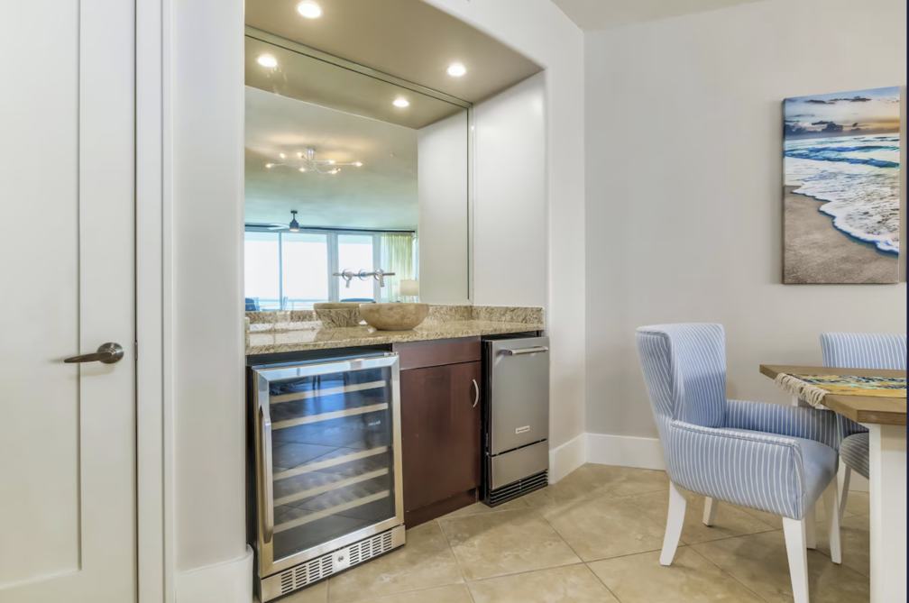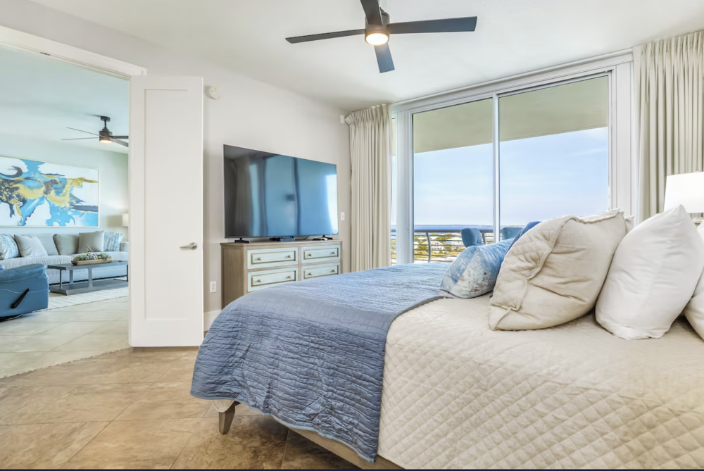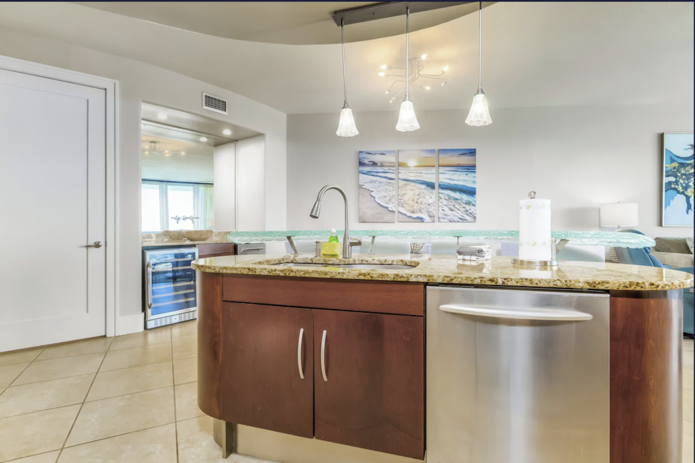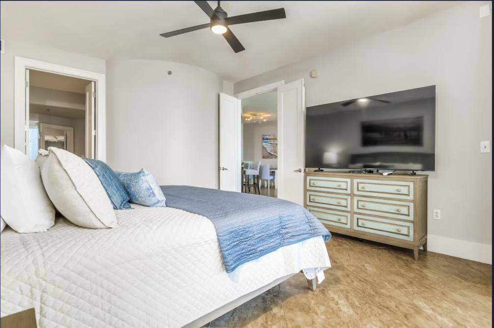 The condo offers two spacious bedrooms, each with a comfortable king-sized bed and soft linens, giving everyone a restful place to recharge. With two full bathrooms, including one with a relaxing jetted bathtub, you’ll have everything you need to unwind after a day at the beach.