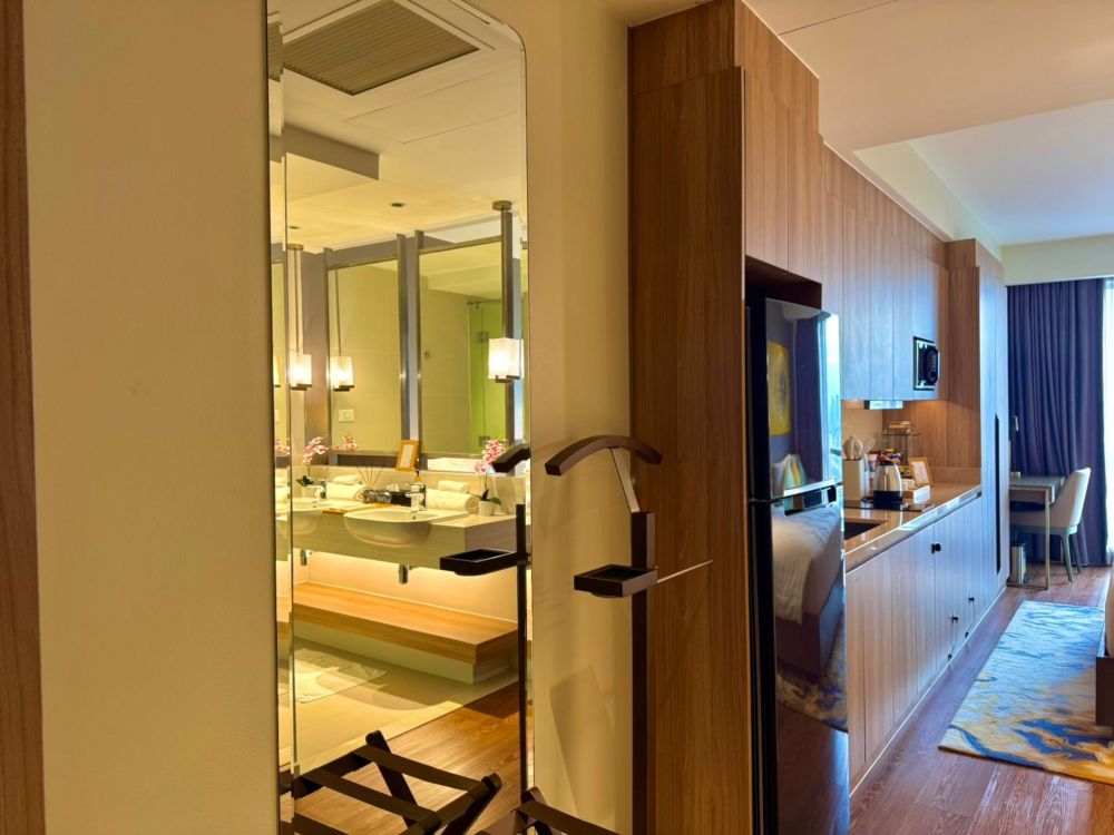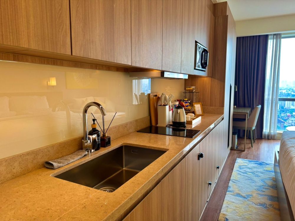 The space includes a comfortable sitting area and a dedicated workspace, ideal for both leisure and business travelers. A fully equipped kitchen with modern appliances, along with a smart TV, Wi-Fi, and essential comforts, ensures a seamless and enjoyable stay.