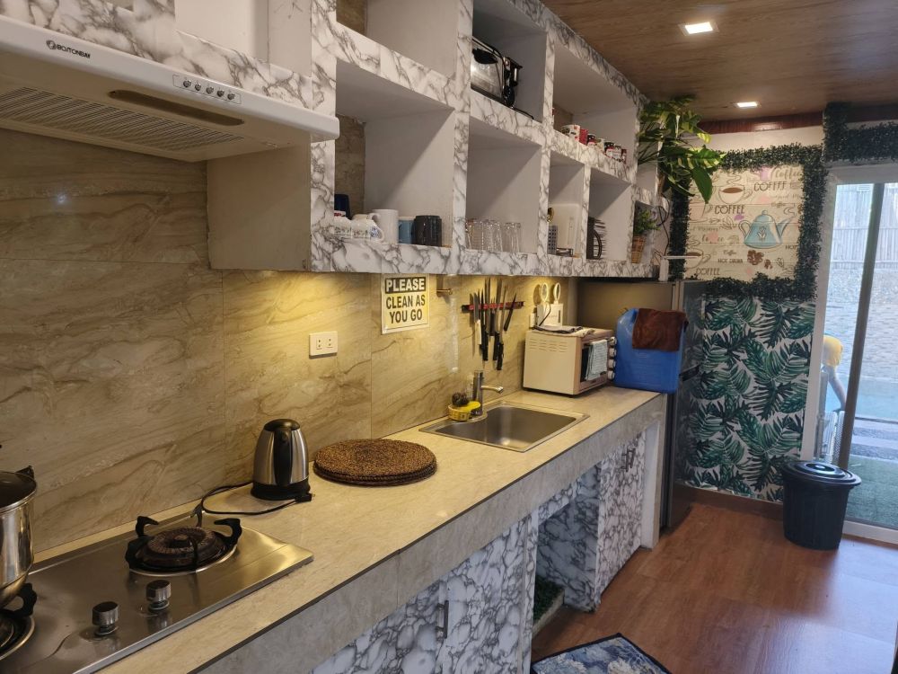 • Equipped kitchen with rice cooker, pots and pans, plates, glass and silverwares