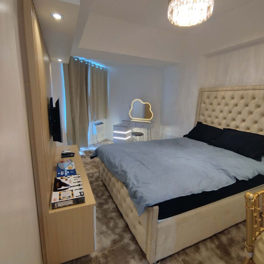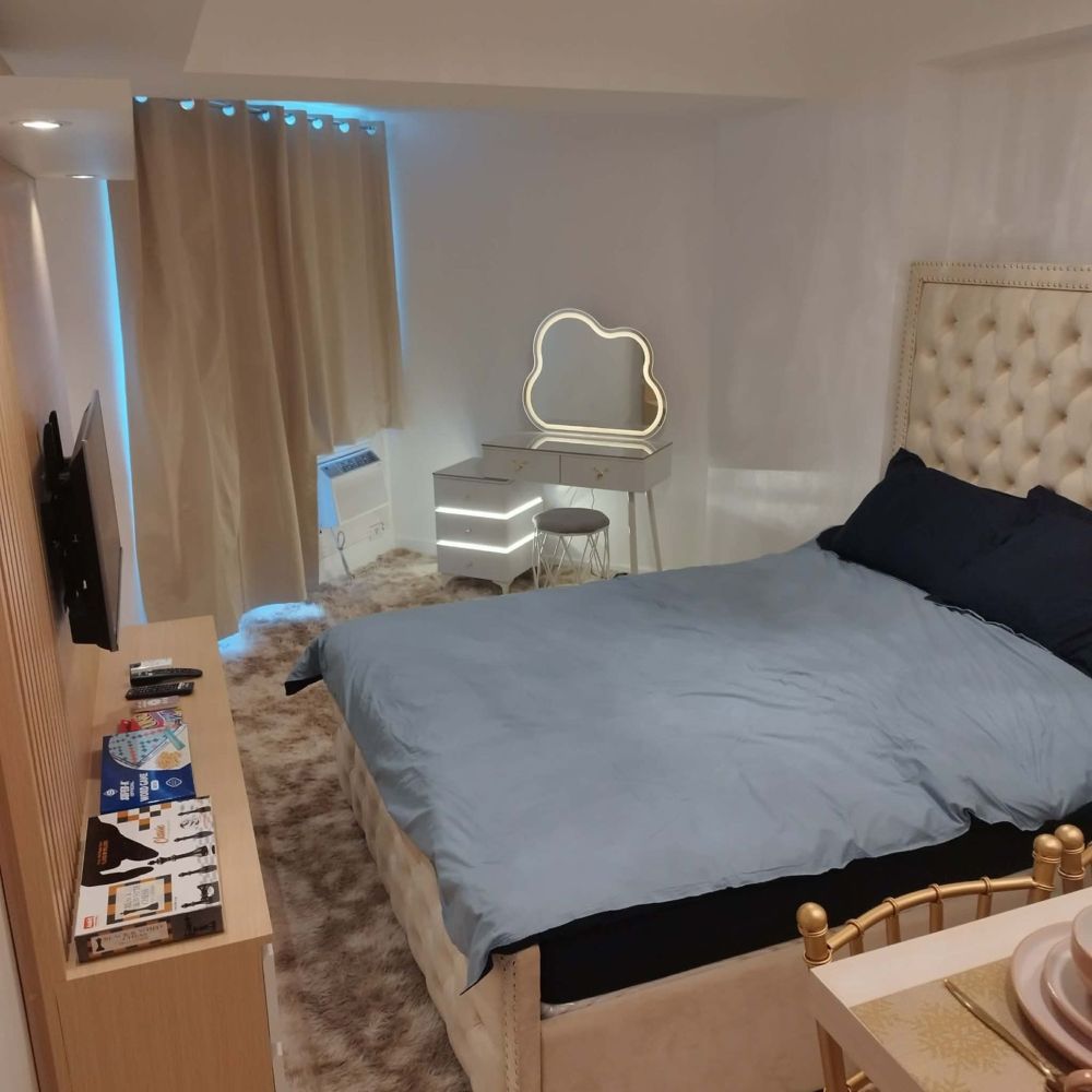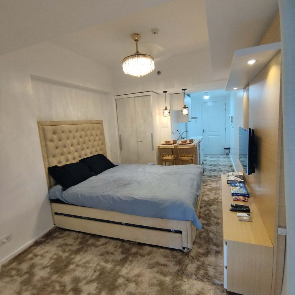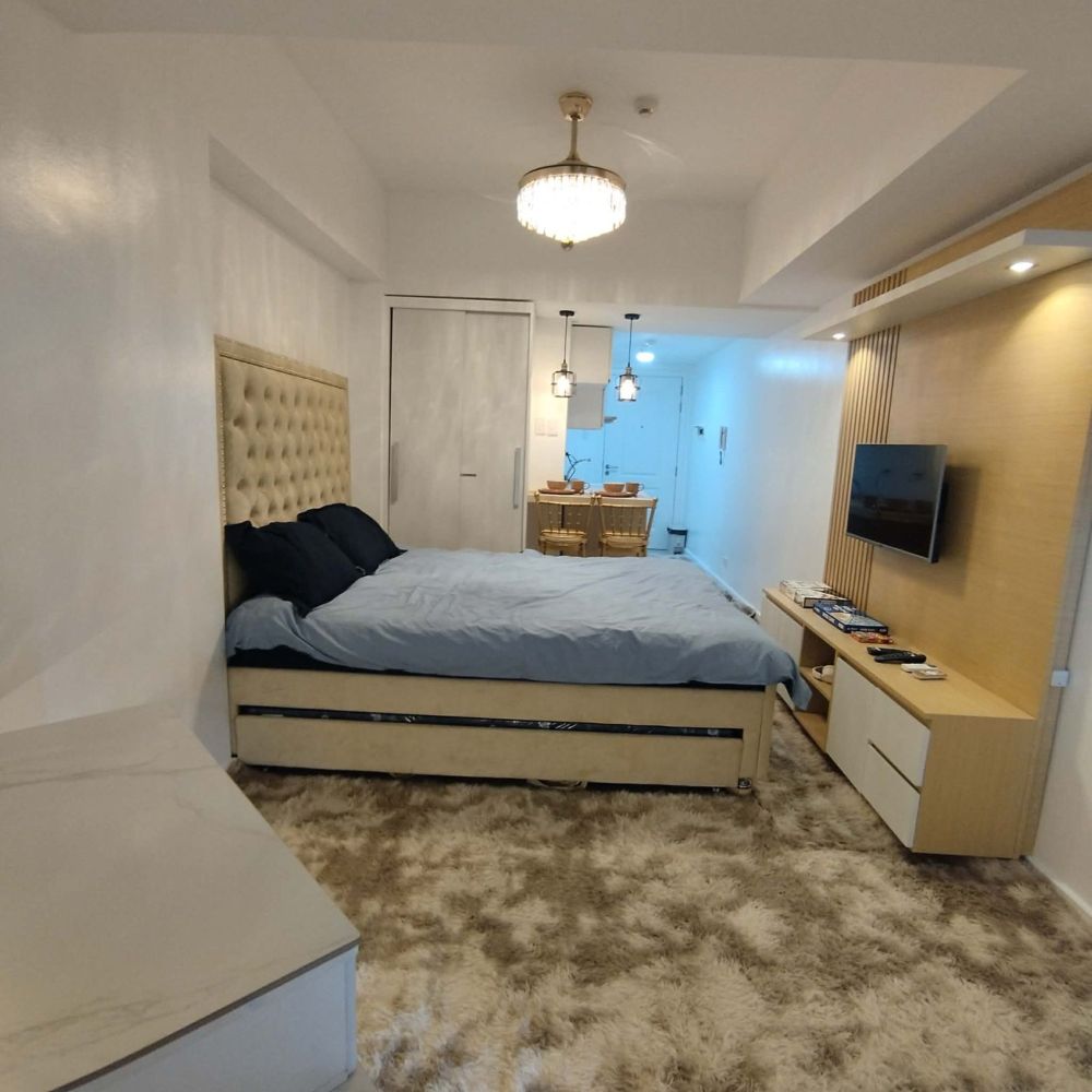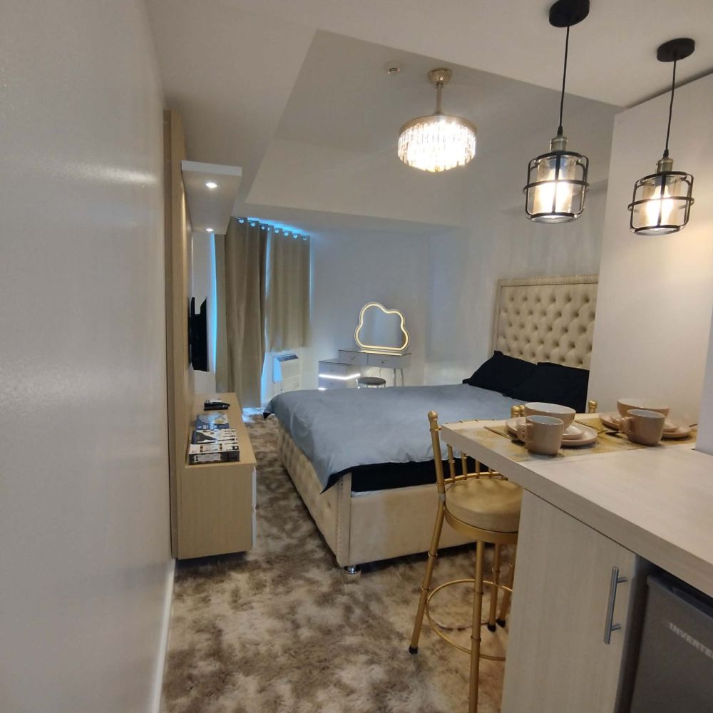 Experience the ultimate in resort-inspired living at the Queen Studio in Azure North, San Fernando, Pampanga. This exclusive property offers a unique blend of luxury and relaxation, featuring a stunning wave pool, a serene beach pool complete with a bar, and a welcoming clubhouse with a warm lobby and lounge area. Enjoy breathtaking views from the open roof deck, perfect for unwinding with friends over drinks.