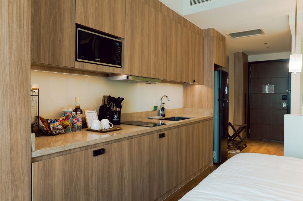 Each suite features well-appointed living spaces, comfortable bedding, and essential amenities to ensure a seamless stay. Guests can enjoy access to premium facilities, including a swimming pool, fitness center, and beautifully landscaped areas ideal for relaxation.