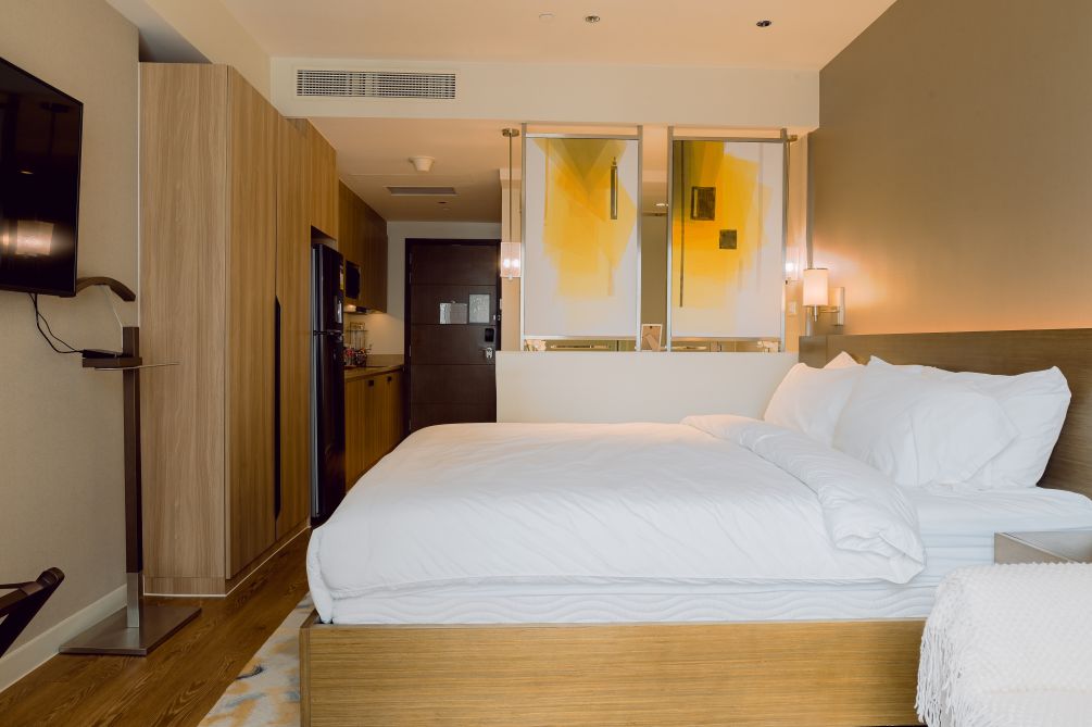 Each suite features well-appointed living spaces, comfortable bedding, and essential amenities to ensure a seamless stay. Guests can enjoy access to premium facilities, including a swimming pool, fitness center, and beautifully landscaped areas ideal for relaxation.