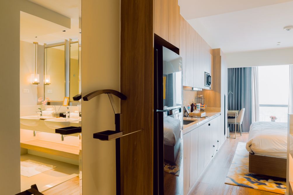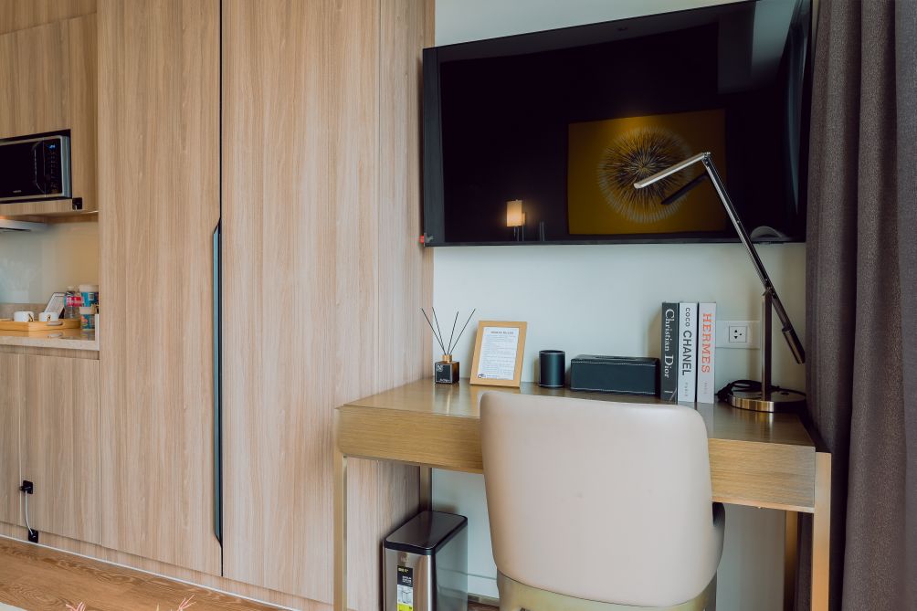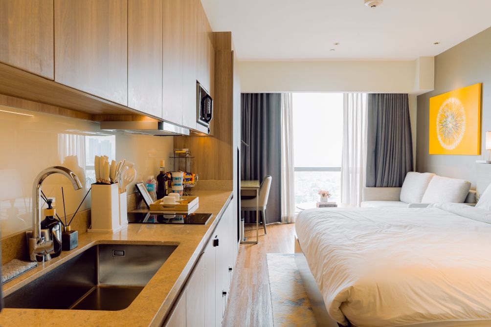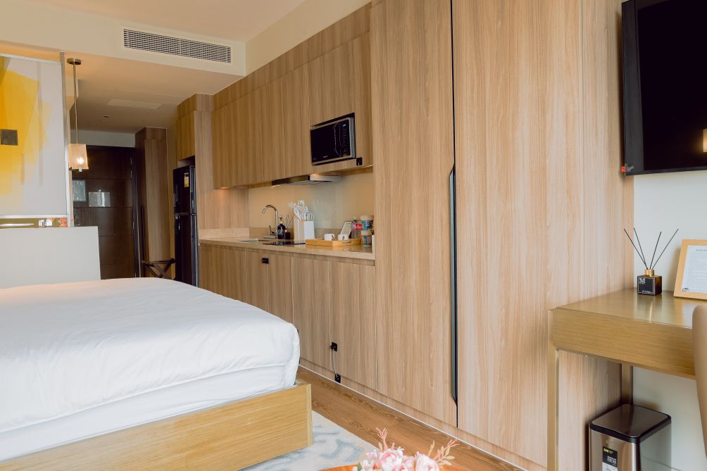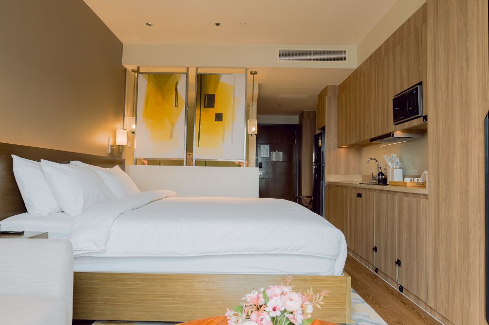 Each suite features well-appointed living spaces, comfortable bedding, and essential amenities to ensure a seamless stay. Guests can enjoy access to premium facilities, including a swimming pool, fitness center, and beautifully landscaped areas ideal for relaxation.