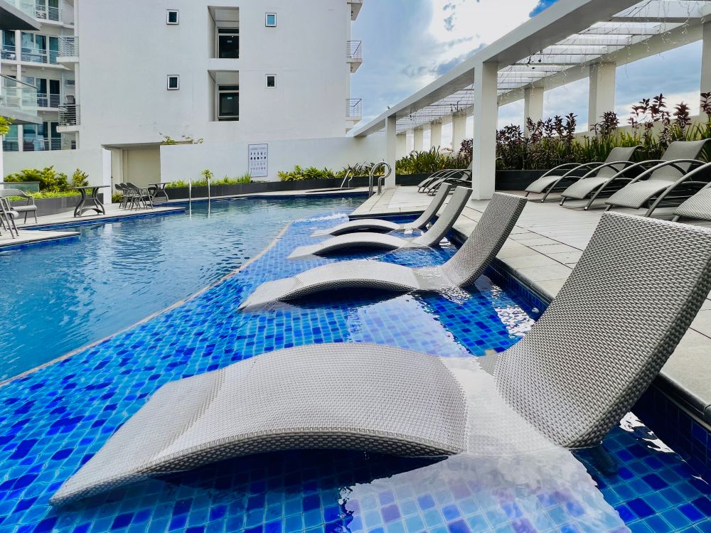 Residents can take advantage of premium amenities, including a shared swimming pool, a fully equipped fitness center, and a children's playground—perfect for families. Whether you're visiting for a short getaway or planning a longer stay, this condo offers a seamless blend of relaxation and urban convenience.