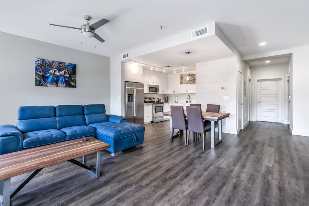 This elegant and spacious 1 bedroom condo comes equipped with an amazing city view from the rooftop where you can enjoy your morning coffee or an afternoon cocktail, modern design with high ceilings, full kitchen and bathroom amenities, bedroom with walk-in closet, a full bathroom and a spacious living room with a soft pull out sofa.
