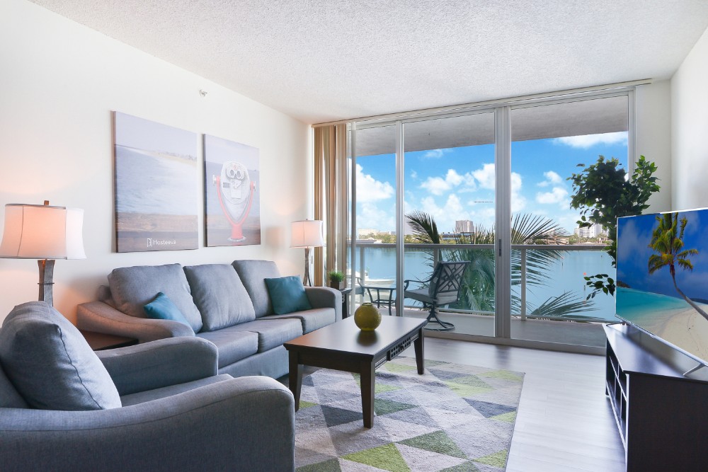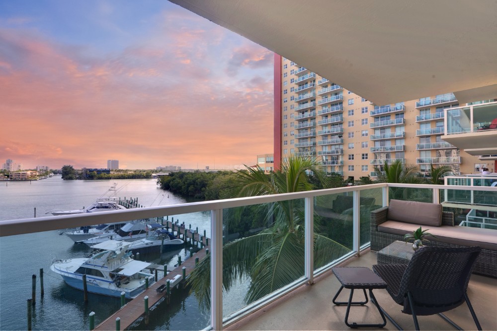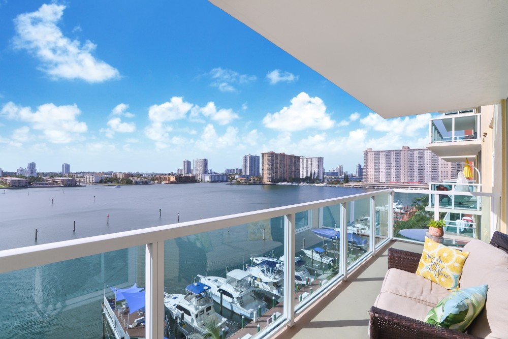 This Intracoastal Yacht Club condo comes with marina views from a private and spacious glass balcony and is equipped with everything from a sparkling waterfront pool, hot tub, full-service spa and sauna to your spacious condo furnished with custom interiors and hand-picked furniture.