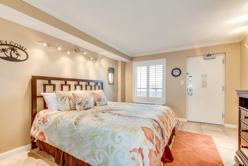 The Boardwalk Beach Resort #433 is an OCEANFRONT, one bedroom, one bath vacation rental condo, that sleeps six. It is ideally located in the heart of Myrtle Beach, SC, on North Ocean Blvd. An eclectic design plan with pops of bright colors adds to the tropical ambiance that you will feel when you unlock the door to this fabulous beach getaway in the Grand Strand. The Boardwalk Beach Resort #433 rental condo features a king size bed, a queen size sofa bed, a full Murphy bed, flat-screen TVs, DVD players, a Jacuzzi tub, an OCEANFRONT private balcony and WiFi, on the much desired fourth floor!